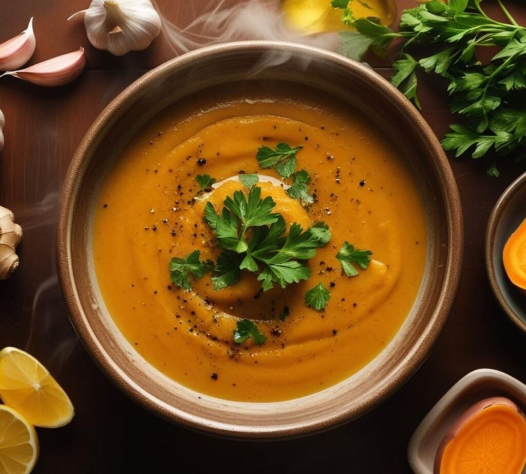 🍠 Sopa Cremosa de Batata-Doce com Queijo Derretido e Toque de Alecrim