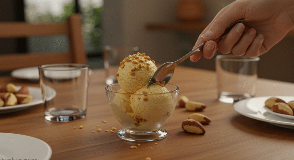 Se você busca uma sobremesa refrescante, saudável e cheia de brasilidade, o Sorvete Cremoso de Cupuaçu com Castanha-do-Pará Crocante é